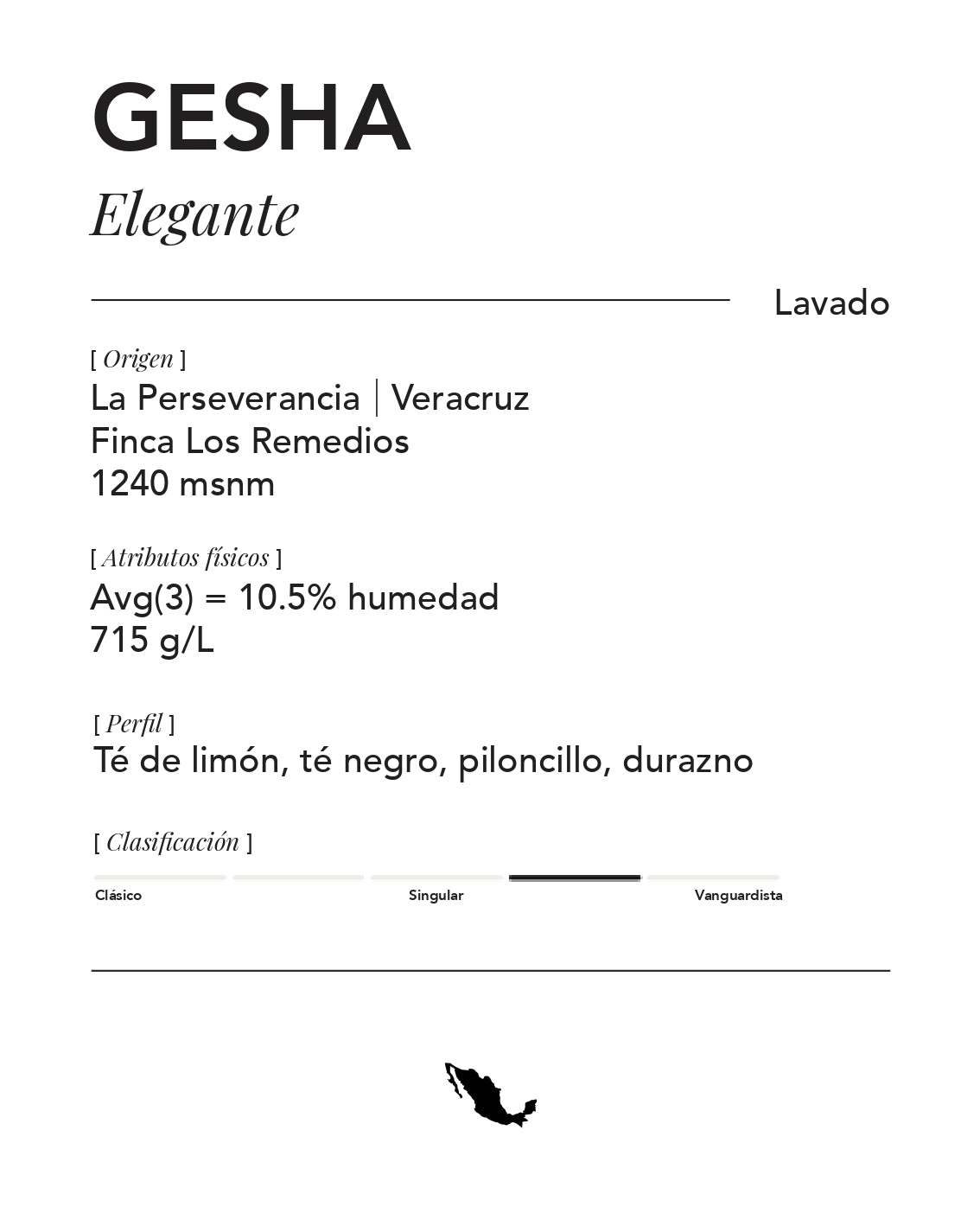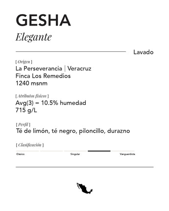 En México, el Gesha llegó en 1980 a través del Instituto Mexicano del Café. Aunque su cultivo es limitado, ha encontrado en regiones como Veracruz un terroir capaz de expresar su complejidad. Morfológicamente, es una planta alta, de ramas en forma de "S" y hojas alargadas. Su resistencia parcial a la roya y su calidad de taza excepcional lo han convertido en un símbolo de excelencia.